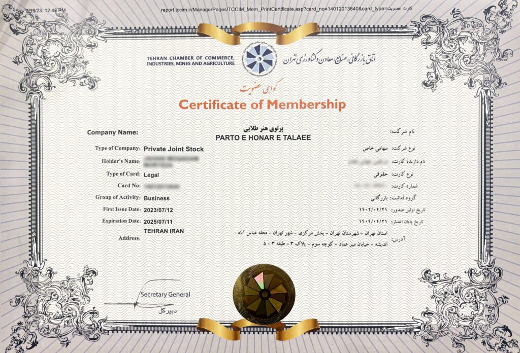 پروانه عضویت در اتاق ایران
