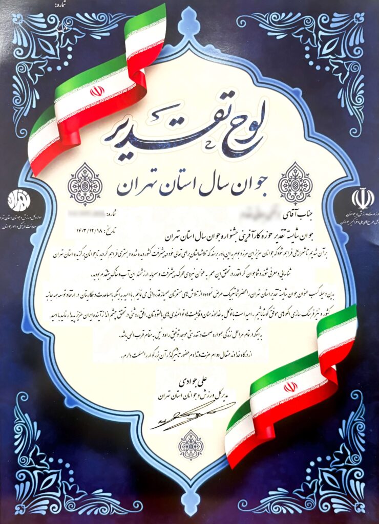کسب لوح تقدیر جوان سال توسط مدیریت محترم شرکت هنر طلایی در سال 1403